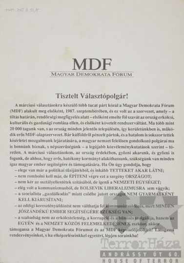 THM-PLA-2017.8.56Ta - MDF választási szórólap - 1990