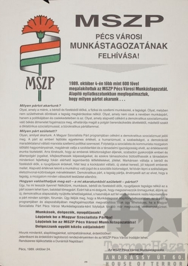 THM-PLA-2017.1.26 - MSZP tagtoborzó plakát - 1989
