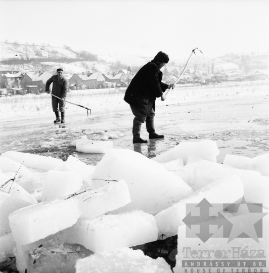 THM-BJ-01552 - Jégvágók a bonyhádi halastavon az 1960-as években