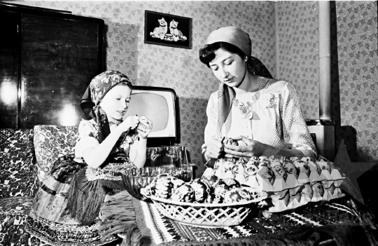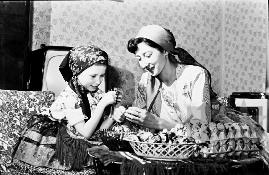 THM-BJ-05947 - Farkas Lászlóné tojásfestő művész az 1960-as években