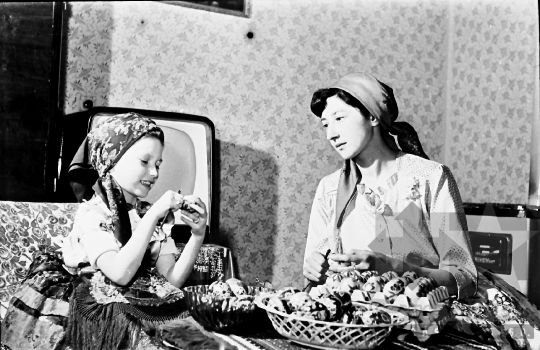 THM-BJ-05953 - Farkas Lászlóné tojásfestő művész az 1960-as években