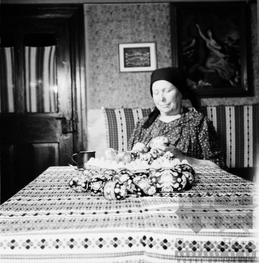 THM-BJ-00987 - Czencz Marietta tojásírást tanul Dér Józsefnétől Bátán az 1960-as években