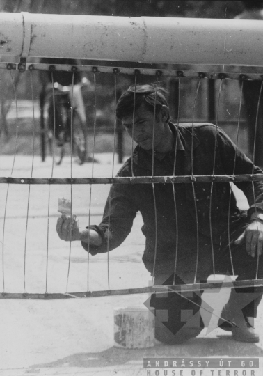 THM-BJ-11308 - Szakállas a sorompó festése Szekszárdon az 1960-as években