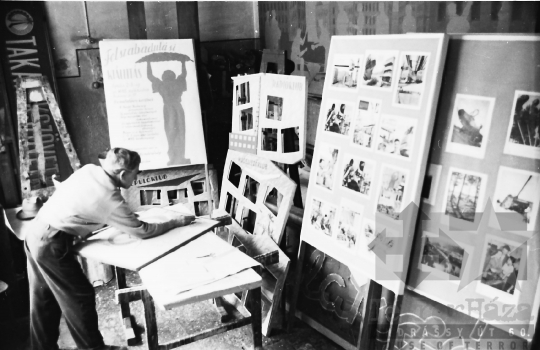 THM-BJ-00580a - Ferencz Lajos dekoratőr május 1-i dekorációt készít az 1960-as években