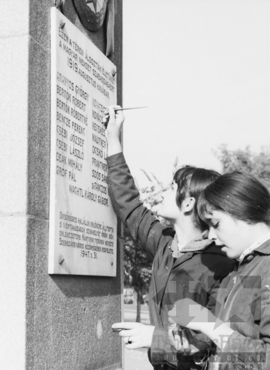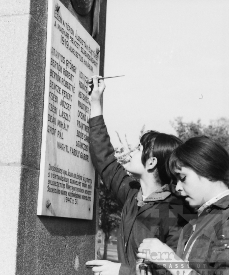 THM-BJ-00001 - Diákok Makrisz Agamemnon 1919-es emlékművénél Szekszárdon az 1970-es években