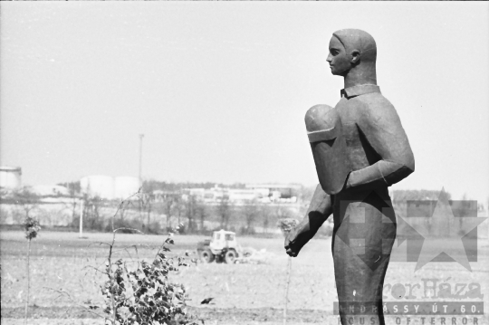THM-BJ-00926a - Kohász szobor a Láng Gépgyár Dombóvári üzemépülete előtt az 1980-as években