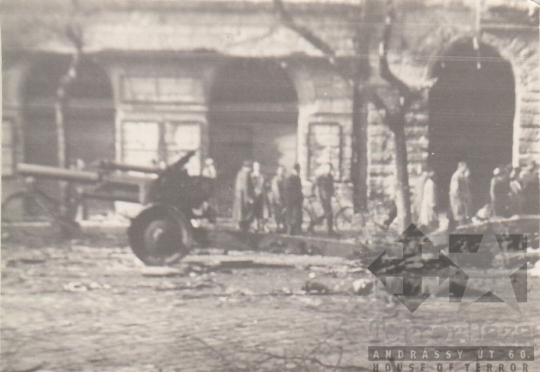 122 mm-es tarackágyú vontató roncs szovjet katona holttest utcakép Ferenc körút Budapest Balassa ImreFotó részletei