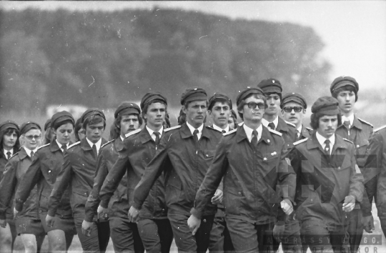 AZONOSÍTÓ: THM-BJ-00715 A rendezvény résztvevői. [A szocialista brigádmozgalom szovjet mintára az 1950-es évek végén kezdett kibontakozni Magyarországon, és rendszerváltoztatáskor szűnt meg. Kezdetben csak az ipari üzemekben és gyárakban alakultak meg a brigádok, majd az agráriumban és a hivatali szférában is létrejöttek. A mozgalom jelszava: „Szocialista módon dolgozni, tanulni és élni” volt.] HELYSZÍN: Szekszárd, Tolna megye DÁTUM: 1977 FOTÓS: Bakó Jenő