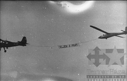 repülőnap repülőgép transzparens légi bemutató MHSZ Őcsény Tolna megye 1973 Bakó Jenő MagyarországFotó részletei