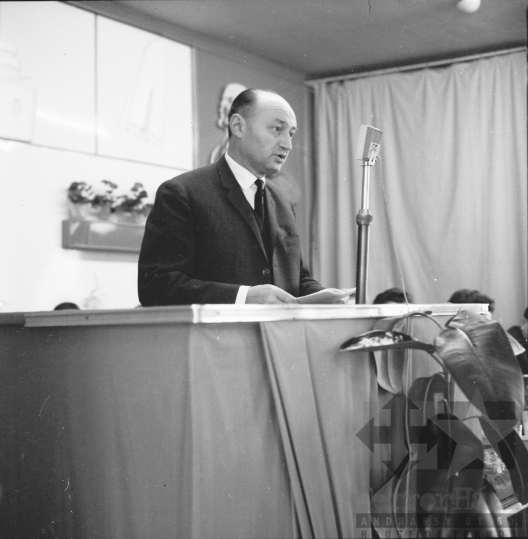 beszéd MSZMP párttitkár pódium mikrofon Szekszárd Tolna megye Magyarország 1968 Bakó Jenő