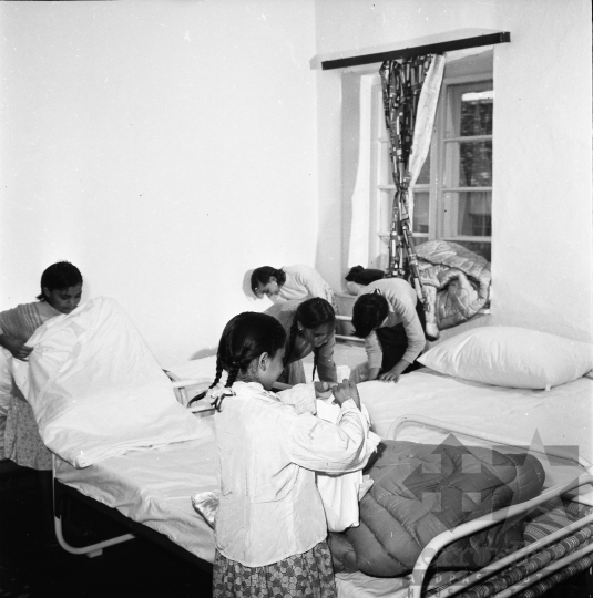 gyerek kollégium általános iskola roma ágynemű Gyulaj Tolna megye Magyarország 1965 Bakó JenőFotó részletei