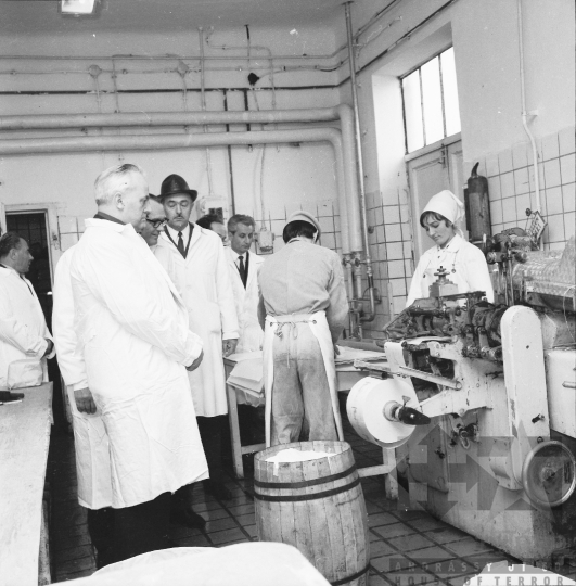gyárlátogatás tejüzem MSZMP köpeny hordó párttitkár Szekszárd Tolna megye Magyarország 1968 Bakó JenőFotó részletei