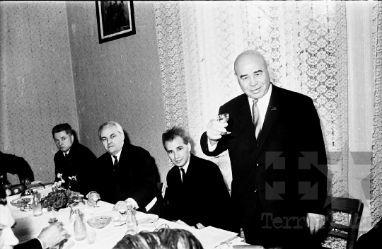 Pjotr Seleszt pohárköszöntőt mond K. Papp József, a Tolna megyei pártbizottság első titkár társaságában.