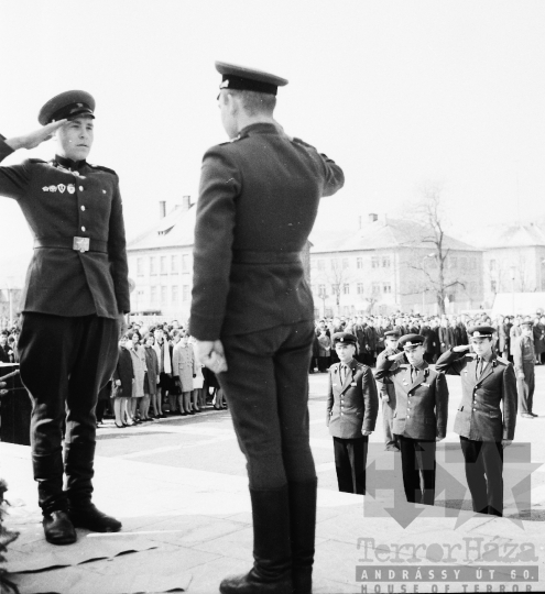 szocialista állami ünnep katonaság április 4. szovjet emlékmű katona egyenruha kitüntetés Szekszárd Tolna megye Magyarország 1967 Bakó JenőFotó részletei