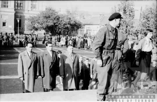 szocialista állami ünnep munkásőrség katonaság április 4. katona koszorúzás szovjet emlékmű egyenruha munkásőr karhatalom Szekszárd Tolna megye Magyarország 1962 Bakó JenőFotó részletei