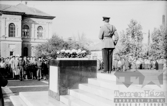 szocialista állami ünnep munkásőrség katona katonaság április 4. koszorúzás szovjet emlékmű egyenruha munkásőr karhatalom Szekszárd Tolna megye Magyarország 1962 Bakó JenőFotó részletei