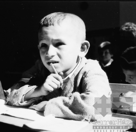 iskola általános iskola iskolapad tanterem diák szegénység tanóra Decs Tolna megye Magyarország 1965 Bakó JenőFotó részletei