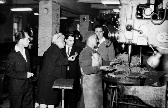 gyárlátogatás gépipar javítóipar üzemcsarnok műhely svájcisapka Szekszárd Tolna megye Magyarország 1968 Bakó JenőFotó részletei