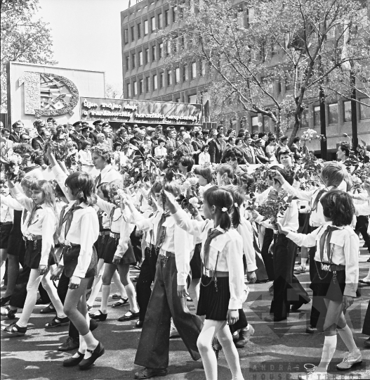 ifjúsági mozgalmi élet szocialista állami ünnep május 1. munka ünnepe felvonulás úttörő tribün egyenruha Tolna megye Magyarország 1977 Bakó JenőFotó részletei