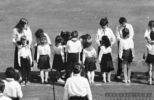 úttörő kisdobos egyenruha avatás ünnepség általános iskola ifjúsági mozgalmi élet iskola Mórágy Tolna megye Magyarország 1988 Bakó JenőFotó részletei