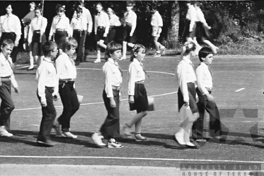 úttörő egyenruha avatás ünnepség általános iskola ifjúsági mozgalmi élet iskola Mórágy Tolna megye Magyarország 1988 Bakó JenőFotó részletei