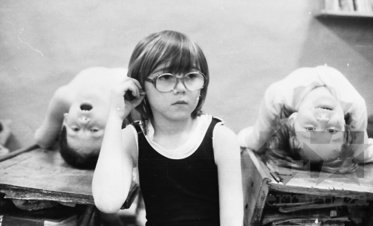 általános iskola iskola tornaóra tanterem osztály diák tornaruha iskolapad Mórágy Tolna megye Magyarország 1988 Bakó JenőFotó részletei