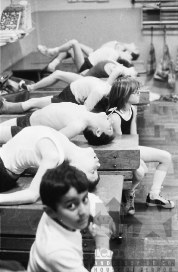 általános iskola iskola tornaóra tanterem osztály diák tornaruha iskolapad Mórágy Tolna megye Magyarország 1988 Bakó JenőFotó részletei