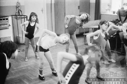 általános iskola iskola tornaóra tanterem osztály diák tornaruha iskolapad Mórágy Tolna megye Magyarország 1988 Bakó JenőFotó részletei