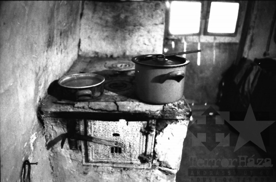 konyha tűzhely sparhelt lábas fazék lakhatás szegénység Miszla Tolna megye Magyarország 1981 Bakó JenőFotó részletei
