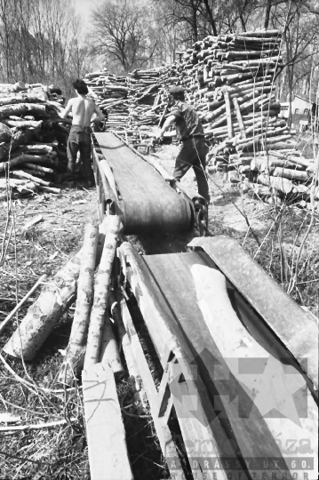 szállítószalag rönkfa rakodómunkás Bogyiszló Tolna megye Magyarország 1983 Bakó JenőFotó részletei