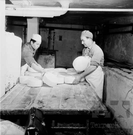 sajtgyártás tejüzem svájcisapka Szakály Tolna megye Magyarország 1965 Bakó JenőFotó részletei