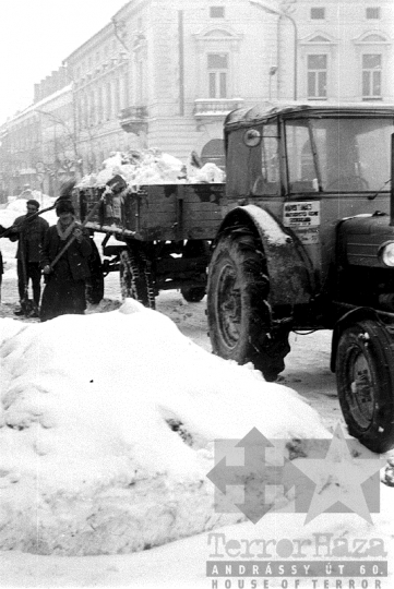 tél lapát traktor utánfutó utcakép belváros Szekszárd Tolna megye Magyarország 1962 Bakó Jenő