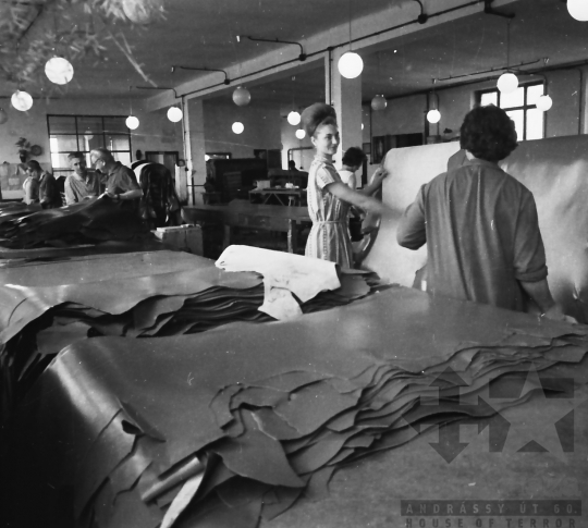 bőripar bőrgyár bőrszabászat üzemcsarnok Simontornya Tolna megye Magyarország 1965 Bakó JenőFotó részletei