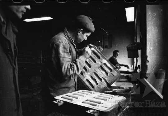 műhely kisipar öntöde öntőforma svájcisapka Gyönk Tolna megye Magyarország 1966 Bakó JenőFotó részletei