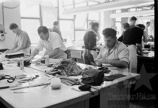 bőripar kesztyűgyár bőrszabászat üzem Dombóvár Tolna megye Magyarország 1966 Bakó JenőFotó részletei