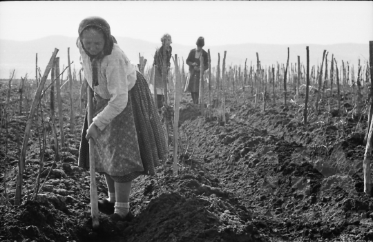 termelőszövetkezet szőlőtőke kendő kapa szőlőföld Bonyhád Tolna megye Magyarország 1966 Bakó JenőFotó részletei