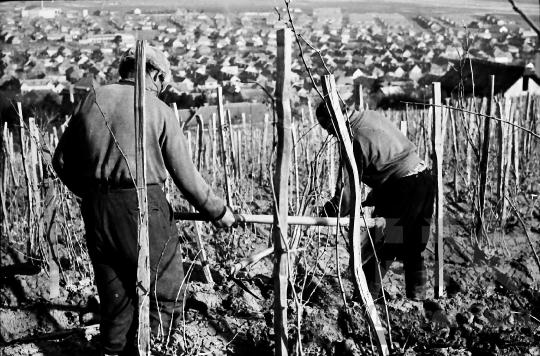 termelőszövetkezet szőlőtőke kapa szőlőföld Bonyhád Tolna megye Magyarország 1966 Bakó JenőFotó részletei