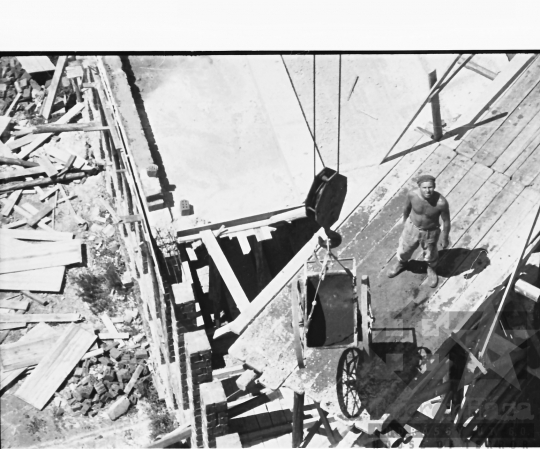 építkezés egészségügy daru talicska kórház Dombóvár Tolna megye Magyarország 1967 Bakó JenőFotó részletei