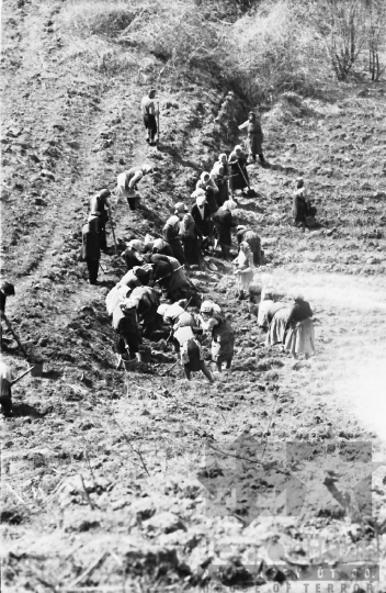 AZONOSÍTÓ: THM-BJ-00717 Férfi beszédet mond - transzparensen felirat: "Munkánk minőségének és hatékonyságának javításával, többletvállalásokkal készülünk a NAGY OKT. SZOC. FORR. 60. évfordulójára". [Az októberi orosz forradalom (kommunista propagandában: nagy októberi szocialista forradalom) 1917. november 6–12. (október 24–30.) között zajlott, amelynek során a bolsevikok a Téli Palota ostroma után az ott székelő Ideiglenes Kormány tagjait letartóztatták, és Lenin vezetésével, akit a Népbiztosok Tanácsa elnökévé választottak, puccsal átvették a hatalmat. Hazánkban ez a nap 1950-től 1989-ig pártállami ünnep volt.] [A szocialista brigádmozgalom szovjet mintára az 1950-es évek végén kezdett kibontakozni Magyarországon, és rendszerváltoztatáskor szűnt meg. Kezdetben csak az ipari üzemekben és gyárakban alakultak meg a brigádok, majd az agráriumban és a hivatali szférában is létrejöttek. A mozgalom jelszava: „Szocialista módon dolgozni, tanulni és élni” volt.] HELYSZÍN: Szekszárd, Tolna megye DÁTUM: 1977 FOTÓS: Bakó Jenő