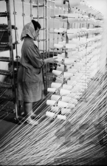 textilipar selyemgyár köpeny orsózó fonal Tolna Tolna megye Magyarország 1968 Bakó JenőFotó részletei
