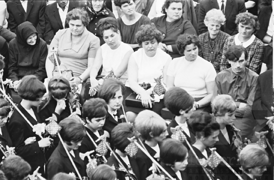 ballagás diák iskola szakközépiskola ünnepség évzáró ünneplő vándorbot virág Szekszárd Tolna megye Magyarország 1968 Bakó JenőFotó részletei