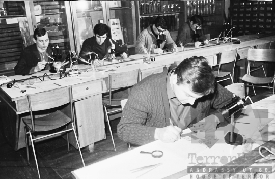 diák iskola technikum labor mikroszkóp Szekszárd Tolna megye Magyarország 1968 Bakó JenőFotó részletei