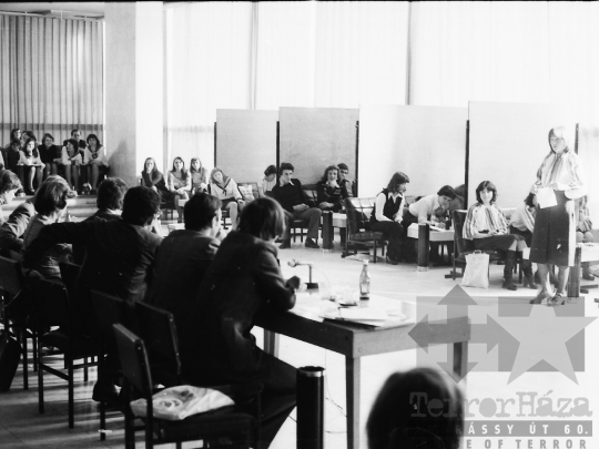 ifjúsági mozgalmi élet KISZ zsűri vetélkedő csapat paraván Szekszárd Tolna megye Magyarország 1977 Bakó JenőFotó részletei