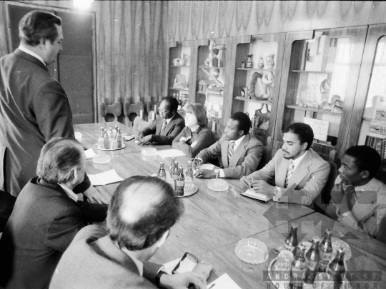 beszéd delegáció tanácselnök Márka üdítő Traubisoda üveg hamutartó pohár tálca diplomácia MSZMP Szekszárd Tolna megye Magyarország 1978 Bakó JenőFotó részletei