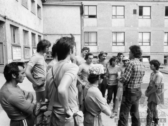 AZONOSÍTÓ: THM-BJ-00715 A rendezvény résztvevői. [A szocialista brigádmozgalom szovjet mintára az 1950-es évek végén kezdett kibontakozni Magyarországon, és rendszerváltoztatáskor szűnt meg. Kezdetben csak az ipari üzemekben és gyárakban alakultak meg a brigádok, majd az agráriumban és a hivatali szférában is létrejöttek. A mozgalom jelszava: „Szocialista módon dolgozni, tanulni és élni” volt.] HELYSZÍN: Szekszárd, Tolna megye DÁTUM: 1977 FOTÓS: Bakó Jenő