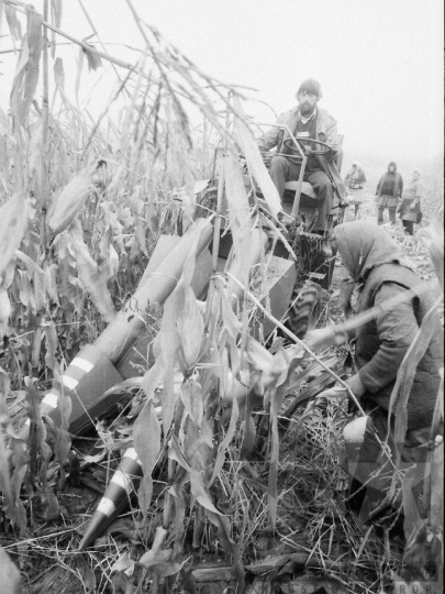 állami gazdaság kukorica betakarítás munkagép Dalmand Tolna megye Magyarország 1983 Bakó JenőFotó részletei