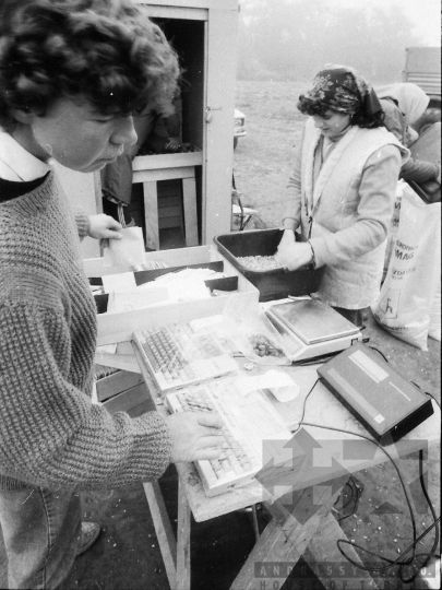 állami gazdaság kukorica vetőmag zsák teherautó mérleg pénztárgép kendő Dalmand Tolna megye Magyarország 1983 Bakó JenőFotó részletei