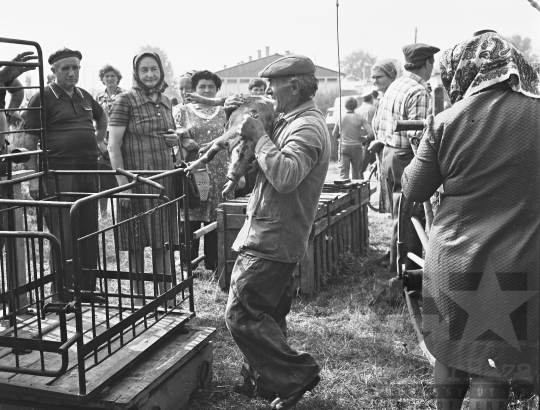 állat malac ketrec vásár Szekszárd Tolna megye 1977 Bakó Jenő MagyarországFotó részletei