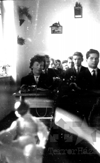 gimnázium ballagás diák iskola ünnepség évzáró tanterem iskolapad tarisznya ünneplő Szekszárd Tolna megye Magyarország 1961 Bakó Jenő