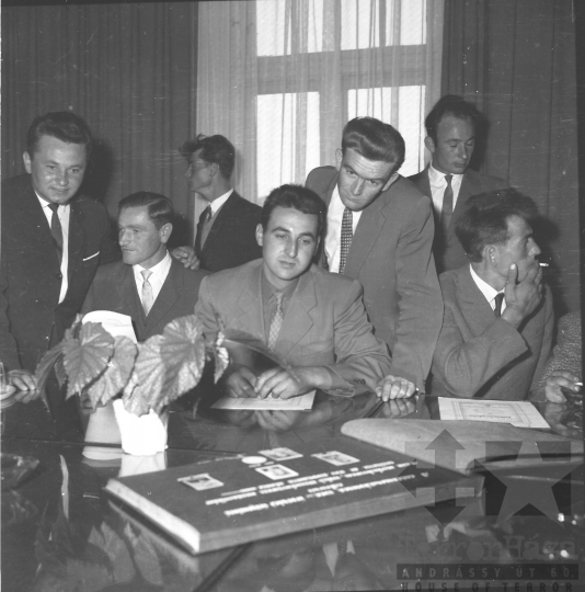 AZONOSÍTÓ: THM-BJ-00715 A rendezvény résztvevői. [A szocialista brigádmozgalom szovjet mintára az 1950-es évek végén kezdett kibontakozni Magyarországon, és rendszerváltoztatáskor szűnt meg. Kezdetben csak az ipari üzemekben és gyárakban alakultak meg a brigádok, majd az agráriumban és a hivatali szférában is létrejöttek. A mozgalom jelszava: „Szocialista módon dolgozni, tanulni és élni” volt.] HELYSZÍN: Szekszárd, Tolna megye DÁTUM: 1977 FOTÓS: Bakó Jenő